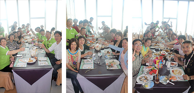 曼谷玉葉太空酒店建筑高度309米,總樓層數(shù)為88 層,是市內(nèi)最高的地標(biāo)性建筑。綠之韻精英們來到位于第76層BAIYOKE SKY旋轉(zhuǎn)餐廳享受國際自助餐。這里的自助餐包含各國風(fēng)味,品種繁多,鮮美的海鮮、綿蜜的甜品、豐富的熱帶水果……精英們一邊享用美食,一邊360度觀賞曼谷市容,1500平方公里的美景盡收眼前,妙不可言!