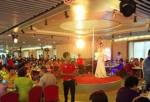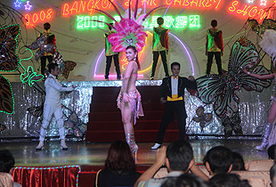 夜幕降臨,海岸亮起了燈火,在海風(fēng)的吹拂下,芭提雅變得神秘起來。大街上霓虹閃爍,旅人如織,處處回蕩著動感勁爆的音樂,充溢著肆無忌憚的美色誘惑。東方公主號的人妖表演,也是當(dāng)?shù)氐奶厣?,這里集中了泰國最漂亮的人妖,的確一個(gè)個(gè)都是風(fēng)情萬種的,才藝出眾,讓精英們享受到這里獨(dú)特的異域風(fēng)情。