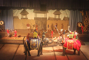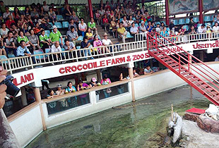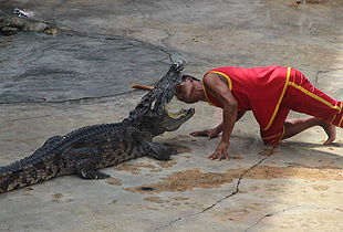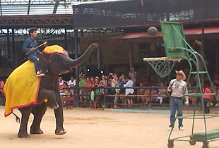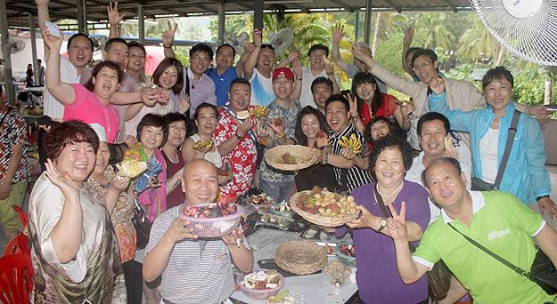 東芭樂園,占地面積1600多畝,是一個(gè)泰式鄉(xiāng)村風(fēng)格的休閑兼度假公園。園中有人工湖,水光瀲滟,小河繚繞于亭臺樓閣之間,樹木蔥籠,鳥語花香,景色如畫。園中設(shè)有文化村,是集中展示泰國民族文化的場所。園內(nèi)節(jié)目三大部分:一是泰國的民俗表演,二是大象表演,三是植物園。民俗歌舞很質(zhì)樸、很地道,表演者就是村寨中人;大象表演格外精彩。綠之韻精英們或看著表演,或與大象合影,或飲一口冰鎮(zhèn)的椰汁,各自用不同的方式享受著度假的閑適和快樂。