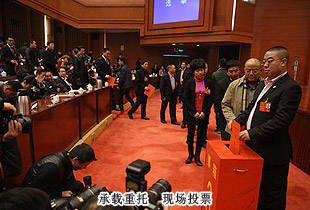10日下午3時許,長沙市十四屆人大二次會議舉行第三次全體會議。大會執(zhí)行主席、市人大常委會副主任張建國主持會議。本次大會應到代表501人,實到代表490人,符合法定人數(shù)。大會選舉設總監(jiān)票人、監(jiān)票人,總計票人、計票人。大會一致通過了總監(jiān)票人、監(jiān)票人名單,計票人由大會秘書處指定。檢查完票箱,工作人員分發(fā)選票,發(fā)出的選票數(shù)與到會代表人數(shù)相符。代表們填寫完選票后,按次序進行投票。經(jīng)清點,收回的選票數(shù)與發(fā)出的選票數(shù)相同,選舉有效。根據(jù)計票結(jié)果,張建國宣布:胡衡華當選為長沙市人民政府市長。胡衡華起立向全體代表致意,會場內(nèi)響起熱烈的掌聲。