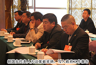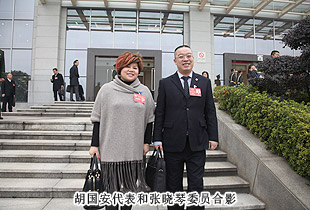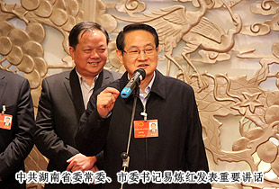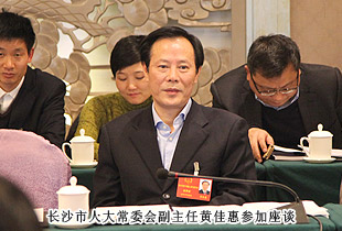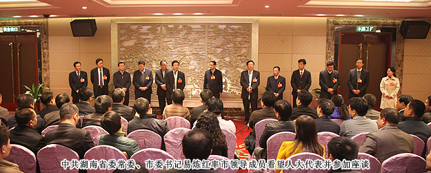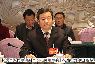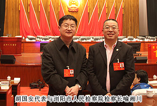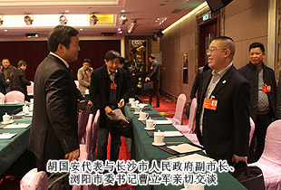 開幕式后,中共湖南省委常委、市委書記易煉紅,中共長沙市委副書記、長沙市人民政府市長胡衡華一行來到各地區(qū)代表團,與出席市十四屆人大二次會議的代表們一起審議政府工作報告,聽取代表們的建議和意見。在瀏陽市代表團分組審議座談會上,就2014年長沙經(jīng)濟社會如何保持平穩(wěn)快速發(fā)展,代表們紛紛獻計獻策。中共長沙市委副書記、長沙市人民政府市長胡衡華,長沙市人大常委會副主任黃佳惠,長沙市人民政府副市長、瀏陽市委書記曹立軍等市領(lǐng)導成員仔細傾聽每位代表發(fā)言,認真記錄,還不時一起探討。胡國安代表在審議時針對胡市長在講話中提到的“全力打造瀏陽河生態(tài)經(jīng)濟示范區(qū),把瀏陽經(jīng)開區(qū)培育成新的千億園區(qū)”和“加快移動電子商務基地建設,促進電子商務加速發(fā)展,爭創(chuàng)國家電子商務示范基地”的兩個觀點,他結(jié)合園區(qū)、綠之韻集團實際,詳盡闡述了綠之韻集團的生態(tài)經(jīng)濟發(fā)展思路,以及在瀏陽河與撈刀河畔建立生態(tài)休閑區(qū)、建設五星級生態(tài)酒店和綠之韻連鎖酒店、發(fā)展湖南黑茶產(chǎn)業(yè)、打造藍莓產(chǎn)業(yè)鏈等未來八大發(fā)展規(guī)劃。胡衡華、黃佳惠、曹立軍等省市領(lǐng)導認真聆聽胡國安代表的發(fā)言,邊聽邊記,邊記邊問,對發(fā)言中提及的思路和做法表示高度的肯定。由于胡國安代表長期扎根基層,服務群眾,盡職履責,深入調(diào)研,連續(xù)兩屆擔任人大代表,所提交的議案均緊扣社會熱點和難點,普遍反映比較強烈,長沙市人民政府副市長、瀏陽市委書記曹立軍對此印象十分深刻。分組審議后,曹立軍副市長立軍同胡國安代表進行了面對面的親切交談。他向胡國安代表不久前獲評“長沙市優(yōu)秀人大代表典型風采人物”表示祝賀,希望胡國安代表進一步發(fā)揮出人大代表參與決策、監(jiān)督協(xié)助、橋梁紐帶的作用,為長沙全面推進“六個走在前列”、率先建成“三市”、強力實施“三倍”、加快現(xiàn)代化進程,作出更大的貢獻!