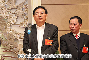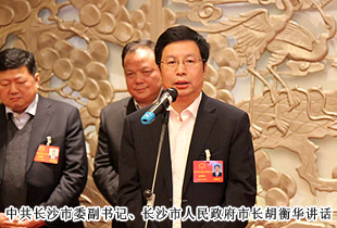 長沙市人大常委會主任袁觀清主持會議并宣布大會開幕。在熱烈的掌聲中,中共長沙市委副書記、長沙市人民政府代市長胡衡華作政府工作報告。胡衡華說,在市委的堅強領(lǐng)導下,全市上下認真落實省委、省政府“四化兩型”總戰(zhàn)略和“三量齊升”總要求,大力開展“六個走在前列”大競賽活動,科學應對復雜嚴峻的宏觀經(jīng)濟形勢,著力穩(wěn)增長、調(diào)結(jié)構(gòu)、轉(zhuǎn)方式、保民生,完成了市第十四屆人民代表大會第一次會議確定的目標任務。預計全市實現(xiàn)地區(qū)生產(chǎn)總值7200億元,增長12%;固定資產(chǎn)投資4600億元,增長20%;財政總收入883.89億元,增長19.54%,其中公共財政預算收入536.63億元,增長23.8%;規(guī)模工業(yè)增加值2600億元,增長14%;社會消費品零售總額2800億元,增長14%;城鎮(zhèn)登記失業(yè)率為2.89%;居民消費價格指數(shù)為102.8;全面完成節(jié)能減排任務。胡衡華指出,綜合考慮各種因素,2014年經(jīng)濟社會發(fā)展的主要預期目標是:地區(qū)生產(chǎn)總值增長11.5%;財政總收入增長15%,公共財政預算收入增長13%;固定資產(chǎn)投資增長18%;規(guī)模工業(yè)增加值增長13%;社會消費品零售總額增長14%左右;單位地區(qū)生產(chǎn)總值綜合能耗下降3%,化學需氧量、二氧化硫、氨氮、氮氧化物等減排指標完成省下達任務;城鎮(zhèn)登記失業(yè)率控制在4%以內(nèi);人口自然增長率在7.5%以內(nèi);居民消費價格指數(shù)控制在103.5左右。胡衡華強調(diào),圍繞上述目標任務,2014年要著重抓好七個方面的工作:突出轉(zhuǎn)型升級,推進新型工業(yè)化;突出發(fā)展服務業(yè),提升競爭優(yōu)勢;突出建管并重,打造品質(zhì)城市;突出城鄉(xiāng)一體,推進新型城鎮(zhèn)化;突出兩型建設,加快引領(lǐng)發(fā)展;突出公共服務,發(fā)展社會事業(yè);突出改善民生,促進社會和諧。胡衡華最后說,新的起點,新形勢、新任務催人奮進。讓我們在市委的正確領(lǐng)導下,按照“六個走在前列”的要求,求真務實,改革創(chuàng)新,為率先建成“三市”、強力實施“三倍”、加快現(xiàn)代化進程而努力前行!