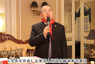 《毛澤東傳奇》總策劃胡國安表示:毛澤東主席是偉大的馬克思主義者,無產階級革命家、戰(zhàn)略家和理論家,中國共產黨、中國人民解放軍和中華人民共和國的主要締造者和領導人。他的“把支部建在連隊”“培訓大量骨干”等思想不僅引領了中華民族的成功,傳承至今也能成為企業(yè)致勝的引導思想。當今中國,十八屆三中全會給我們指明了未來改革發(fā)展的方向,重溫世紀偉人的人生故事,“溫故而知新”將有助于我們汲取前行的巨大的精神養(yǎng)料和政治營養(yǎng)!同時,胡國安認為:維護毛澤東,就是維護五千年中華民族的光榮傳統(tǒng),就是維護中華民族的未來,就是維護人民自己的切身利益,就是維護中華民族的希望!
