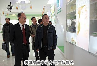 在綠之韻產(chǎn)品形象展廳,董事常務(wù)副總裁勞嘉向考察組一行介紹了綠之韻系列產(chǎn)品、產(chǎn)學(xué)研合作、企業(yè)文化等方面的相關(guān)情況。在集團(tuán)總部五樓會(huì)議廳,胡國(guó)安董事長(zhǎng)向考察組一行介紹了今年10月隆重舉行的綠之韻集團(tuán)十周年盛典,匯報(bào)了社會(huì)責(zé)任、規(guī)范經(jīng)營(yíng)、黨建工作等方面的相關(guān)情況。