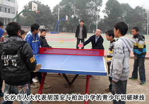 考察期間,長沙市人大代表、綠之韻集團董事長在瀏陽柏加初級中學操場與青少年們零距離交流,切磋乒乓球藝,了解他們心中最真實的需求。座談會上,胡國安代表按眼中所見,心中所感,暢談了關注青少年成長及推進教育體制改革的若干建議。并表示:希望青少年們志存高遠、增長知識、錘煉意志,使一個個小小“少年夢”匯聚成強大的“中國夢”。綠之韻團支部作為關注青少年成長的主要平臺,仍將對青少年成長教育高度關注,充分發(fā)揮團思想陣地和組織陣地的職能,切實關注青少年的成長,為他們的發(fā)展構建良好的社會環(huán)境。