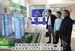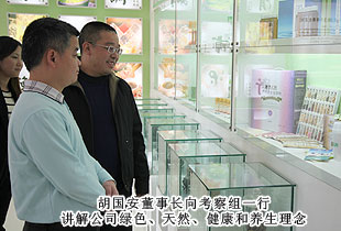 考察過程中,湖南省工商局副局長陳躍文、湖南省網(wǎng)商協(xié)會秘書長一行首先參觀了綠之韻集團(tuán)總部、產(chǎn)品展示廳和科技展示中心及五星級酒店沙盤。胡國安董事長就公司產(chǎn)品、產(chǎn)學(xué)研合作、公益慈善和未來規(guī)劃等相關(guān)情況進(jìn)行了簡短介紹,各位領(lǐng)導(dǎo)邊走、邊聽、邊仔細(xì)詢問,頻頻點(diǎn)頭以示高度肯定和贊許。