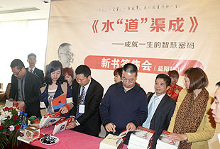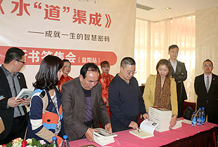 2013年11月16日,胡國安董事長應(yīng)廣大讀者、粉絲的強烈要求,現(xiàn)身湖南益陽參加《水“道”渠成》讀者簽售見面會,1000多名鐵桿擁躉很早就在簽售儀式現(xiàn)場排起了長龍,爭相一睹“水文化”之集大成者董事長胡國安先生的風(fēng)采,不到兩個小時1000多冊《水“道”渠成》瞬間售罄。