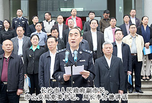 長沙市人民政府副市長、市公安局黨委書記、局長李介德發(fā)表了講話。李介德局長在講話中指出,按照公安部的統(tǒng)一部署,“警營開放周”活動期間,省市公安機關(guān)治安系統(tǒng)各部門警營、警隊、辦公場所將面向社會統(tǒng)一開放,邀請各界人士和人民群眾走進(jìn)警營,了解治安管理工作,暢通警民溝通聯(lián)系渠道。公安機關(guān)作為服務(wù)部門,今后還將進(jìn)一步敞開大門,廣泛傾聽群眾的意見,對群眾提出的不滿意事情、問題進(jìn)行整改,更好地為人民群眾服務(wù)。