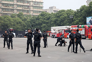 啟動儀式現(xiàn)場,中共湖南省委常委、政法委書記、省公安廳廳長孫建國宣布湖南省公安機關(guān)“規(guī)范執(zhí)法警營開放周”活動開始。孫建國書記、盛茂林副省長、胡國安董事長一行參觀了內(nèi)容豐富的活動展區(qū)。在裝備展示區(qū),與會人員參觀了各警種的現(xiàn)場執(zhí)法儀、移動警務(wù)通、警用服飾、槍械、單警裝備、警用車輛和消防裝備等。特警大隊隊員身穿特警服裝,全方位展示了特警隊員的颯爽英姿;治安大隊展示的各種槍械吸引了所有參觀人員。各展示臺民警耐心、細(xì)致講解了各種裝備的性能和作用,宣傳公安機關(guān)保護人民群眾的職責(zé)。在法律宣傳區(qū),除了展出全省公安機關(guān)執(zhí)法規(guī)范化建設(shè)成果、治安、禁毒、消防和交警等宣傳展板外,民警將大量宣傳法律法規(guī)、防范知識和執(zhí)法規(guī)范化建設(shè)成果宣傳畫冊等宣傳資料分發(fā)到與會人員手中,同時提供現(xiàn)場法律咨詢服務(wù)。接下來的警營開放周活動期間,全省公安機關(guān)將繼續(xù)開展系列豐富多彩的警營開放活動。