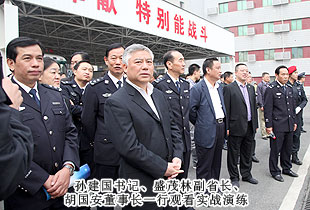 啟動儀式后,中共湖南省委常委、政法委書記、省公安廳廳長孫建國,湖南人民政府副省長盛茂林受邀與部分省市人大代表、政協(xié)委員、社區(qū)干部、知名企業(yè)代表、群眾代表舉行了座談。孫建國書記在與胡國安董事長交談時,用“忠誠履責(zé),無私奉獻(xiàn)”八個字高度評價了胡國安董事長履職期間的優(yōu)秀表現(xiàn)。作為省公安機關(guān)特邀監(jiān)督員,胡國安董事長很好地發(fā)揮出了監(jiān)督、橋梁和參謀作用,為湖南省公安工作和隊伍建設(shè)作出了積極貢獻(xiàn)。胡國安董事長在發(fā)言中表示,通過開展“規(guī)范執(zhí)法警營開放周”活動,可以多視角、高密度、全方位向社會各界和人民群眾展示執(zhí)法規(guī)范化建設(shè)成果,讓社會各界和人民群眾近距離了解公安規(guī)范執(zhí)法的內(nèi)容,將為進(jìn)一步和諧警民關(guān)系、全面提升湖南省公安機關(guān)執(zhí)法公信力發(fā)揮出積極作用。作為省公安機關(guān)特邀監(jiān)督員,一定不辜負(fù)省公安廳黨委的希望,不辜負(fù)孫書記的重托,當(dāng)好監(jiān)督員、宣傳員、輿情員、聯(lián)絡(luò)員、調(diào)研員和服務(wù)員,為全省公安工作和隊伍建設(shè)再作新貢獻(xiàn)!