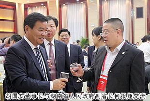 中共湖南省委書記、省人大常委會主任徐守盛對本次大會的召開高度重視。他在賀信中說,廣大湘商是湖南彌足珍貴的一張亮麗名片。當(dāng)前,湖南正處于全面深化改革開放和全面建成小康社會的關(guān)鍵時期,我們將認(rèn)真貫徹落實(shí)黨的十八大精神,以提高經(jīng)濟(jì)增長質(zhì)量和效益為中心,大力促進(jìn)“三量齊升”,全面推進(jìn)“四化兩型”、“四個湖南”建設(shè),加快實(shí)現(xiàn)湖南的“小康夢”、“兩型夢”、“崛起夢”,奮力譜寫中國夢的湖南篇章。相信一個持續(xù)健康發(fā)展、加速開放崛起的湖南,必將為包括湘商在內(nèi)的海內(nèi)外投資者創(chuàng)造更多機(jī)會,帶來豐厚回報。湖南將認(rèn)真落實(shí)中央大政方針和部署要求,一如既往地支持湘商創(chuàng)新創(chuàng)業(yè)、發(fā)展壯大。希望廣大湘商繼續(xù)為家鄉(xiāng)的建設(shè)發(fā)展獻(xiàn)計出力,帶動更多的海內(nèi)外客商來湘投資興業(yè),帶動更多的優(yōu)質(zhì)資源要素聚集湖南,實(shí)現(xiàn)互利共贏,成就事業(yè)夢想,共創(chuàng)美好未來。
