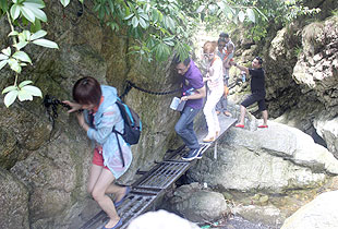 在湖南省安化縣的崇山峻嶺和山澗溪流之間,綿延著一條神秘的茶馬古道。千百年來,無數(shù)的馬幫在這條道路上默默行走,悠遠的馬鈴聲,回蕩在山谷、急流和村寨上空,開辟了一條通往域外的經(jīng)貿(mào)之路,形成了世界上地勢最高、山路最險、距離最遙遠的茶馬文明古道。在關(guān)山峽谷層巖疊翠,怪石嶙峋的道路上行走,綠之韻同仁們盡情體驗了一番攀巖探險的刺激和樂趣。正是因為古道的艱險超乎尋常,沿途壯麗的自然景觀也不斷地激發(fā)人潛在的勇氣、力量和忍耐?!榜R幫憑借自己的剛毅、勇敢和智慧,用心血和汗水澆灌了一條通往茶馬古道的生存之路、探險之路和人生之路。茶馬古道上馬蹄印仍歷歷在目,帶著我們遙憶先輩們的經(jīng)貿(mào)故事,值得我們深思和學習!”綠之韻董事常務(wù)副總裁勞嘉深深感慨道。
