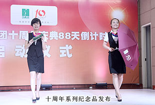 啟動儀式上,綠之韻集團品牌設(shè)計師彭興、綠之韻國際商學(xué)院講師宋沂芳為大家介紹了“十周年終端氛圍營造”活動的概況,包括“十周年品牌形象終端氛圍布置”、“十周年外場視覺設(shè)計布置方案及舞美設(shè)計發(fā)布”和“十周年紀(jì)念品開發(fā)”三個方面。在全場期待的目光中,十周年禮品實物:十周年紀(jì)念茶、十周年紀(jì)念圍巾、十周年發(fā)光紀(jì)念胸章、十周年卡片U盤、十周年紀(jì)念傘、十周年紀(jì)念多功能包(洗漱包)、十周年紀(jì)念幣,首次全景呈現(xiàn)在大家的眼前,迎來了全場一陣又一陣尖叫聲!