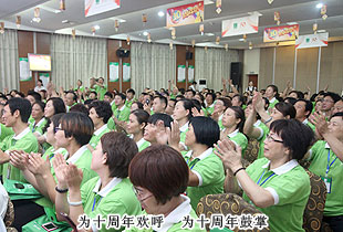 綠之韻十周年慶典總指揮、總裁助理方彥雄在致辭中表示:“十周年,是綠之韻一個新的起點。在這十年,我們因為相信選擇了綠之韻,因為夢想加入了綠之韻。在這十年中,我們肩負企業(yè)責(zé)任和歷史使命,歷經(jīng)風(fēng)雨和挫折,揮灑汗水和淚水,在胡國安董事長的引領(lǐng)下不斷造夢、逐夢和圓夢。從2003年,綠之韻肇始、發(fā)軔,到2013年,綠之韻蓄勢、崛起。十年彈指一揮間,我們匯集了各路精英人杰,創(chuàng)造了‘綠之韻’這個卓越的品牌和事業(yè)平臺,幫助成千上萬心懷創(chuàng)業(yè)初衷、渴望走向成功的普通人走上了夢想的舞臺,收獲了健康、快樂和幸福,實現(xiàn)了自己的人生價值。2013年,是綠之韻永續(xù)經(jīng)營、永遠創(chuàng)業(yè),全面大踏步邁入大健康產(chǎn)業(yè)的發(fā)展元年。未來十年,只要我們秉承“水”的精神,統(tǒng)一思想認(rèn)識、統(tǒng)一目標(biāo)指向、統(tǒng)一行動步伐,不斷地創(chuàng)新、突破、跨越,就會取得比過去的十年更加輝煌的成就!”