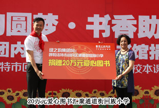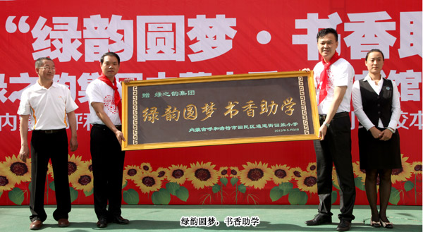 孩子是祖國的花朵,書是祖國的未來。在這個(gè)信息量巨大的社會(huì),孩子的求知欲望從簡單的課本知識(shí)已經(jīng)延伸到生活的各個(gè)知識(shí)層面。臨近“六一”,內(nèi)蒙古呼和浩特市回民區(qū)通道街回族小學(xué)的孩子們收到了一份沉甸甸的兒童節(jié)禮物——“綠之韻集團(tuán)內(nèi)蒙古愛心圖書館”正式在這里落戶。2013年5月31日,綠之韻集團(tuán)將價(jià)值20萬元的愛心圖書送到了通道街回族小學(xué),為孩子們送去了寶貴的知識(shí)財(cái)富,也為他們打開了一扇“希望之窗”。綠之韻集團(tuán)市場營銷中心(中國區(qū))副總經(jīng)理諶獻(xiàn)軍、市場營銷中心(中國區(qū))市場總監(jiān)劉維利、綠之韻集團(tuán)內(nèi)蒙古分公司經(jīng)理侯立新、綠之韻集團(tuán)國際商學(xué)院特聘講師李娜、邵亦冉,以及內(nèi)蒙古經(jīng)銷商發(fā)展委員會(huì)王連坤、郝建兵、張聞?dòng)?、張聞華、喬桂英等20多位委員出席了活動(dòng)。