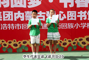 “匯愛心,聚溫暖;集力量,圓夢想;傳書籍,共成長”。當(dāng)一本本圖書交到孩子們手上時(shí),紅撲撲的小臉上綻放出燦爛的笑容,仿佛看見了孩子們的金色未來?;顒?dòng)現(xiàn)場,五年級二班的兩名學(xué)生代表宣讀了《讀書宣言》:“共上一所學(xué),同讀一本書。我們要感謝各位綠之韻富有愛心的叔叔阿姨們,給我們送來了這么多的好書,我們一定不辜負(fù)你們的希望,認(rèn)真學(xué)習(xí),茁壯成長。同時(shí),我們想對在座的同學(xué)們說:書是我們學(xué)生的好朋友,它能讓我們學(xué)到知識(shí),交到朋友。我在此發(fā)出倡議,每位同學(xué)一定要珍惜手里的每本書,積極在同學(xué)之間傳閱這些書,分享書里面的知識(shí)與快樂,一起探討書中的奧妙,共同走進(jìn)知識(shí)的大門?!?br/>